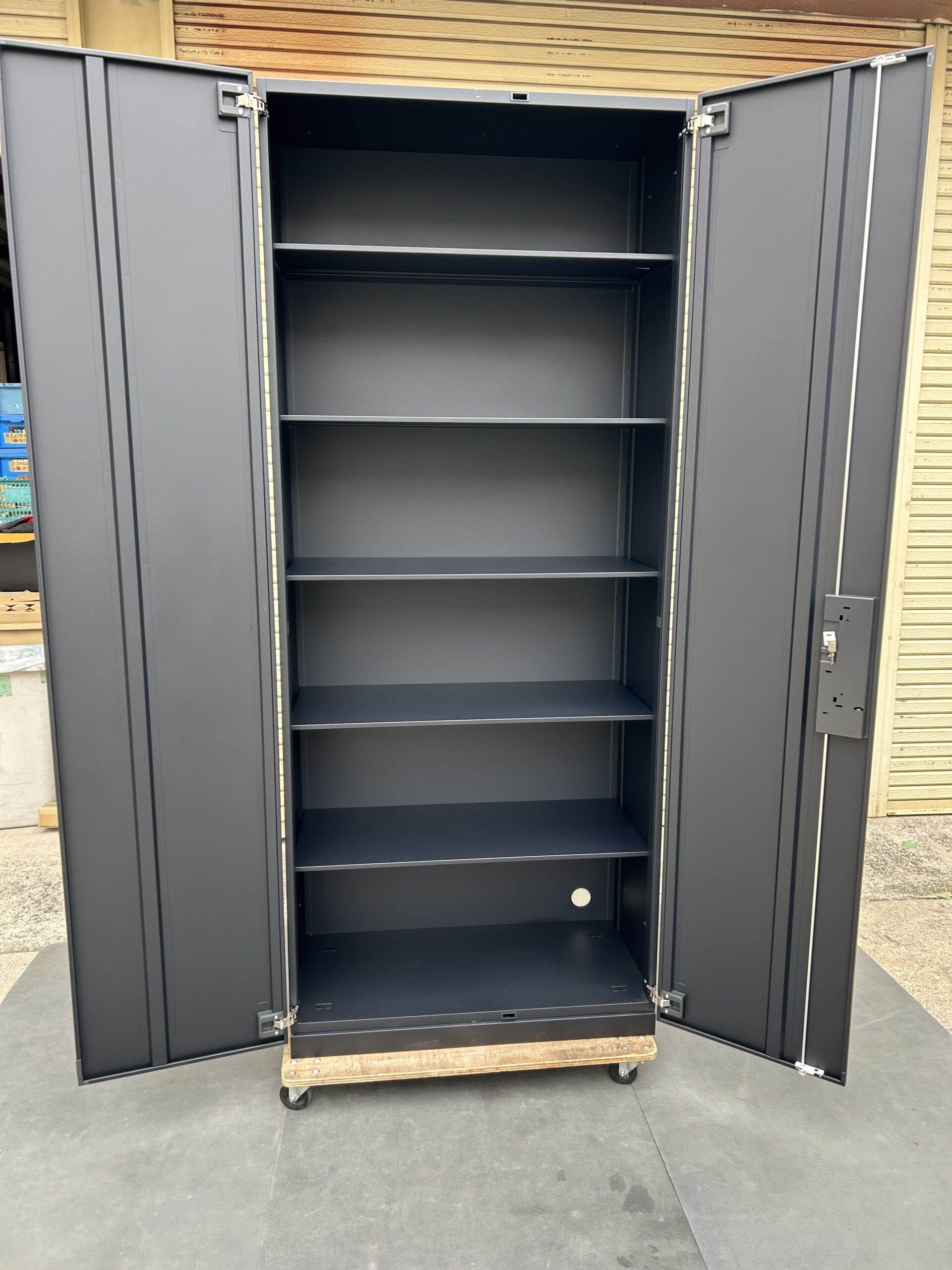 | 材質・仕様 | ■材質 本体・扉・棚板/スチール、焼付塗装 引手/樹脂成型品(ABS) ■仕様・機能 A4ファイル縦6段収納可能/棚板5枚付属 内寸法/W862 D420 H2050 |